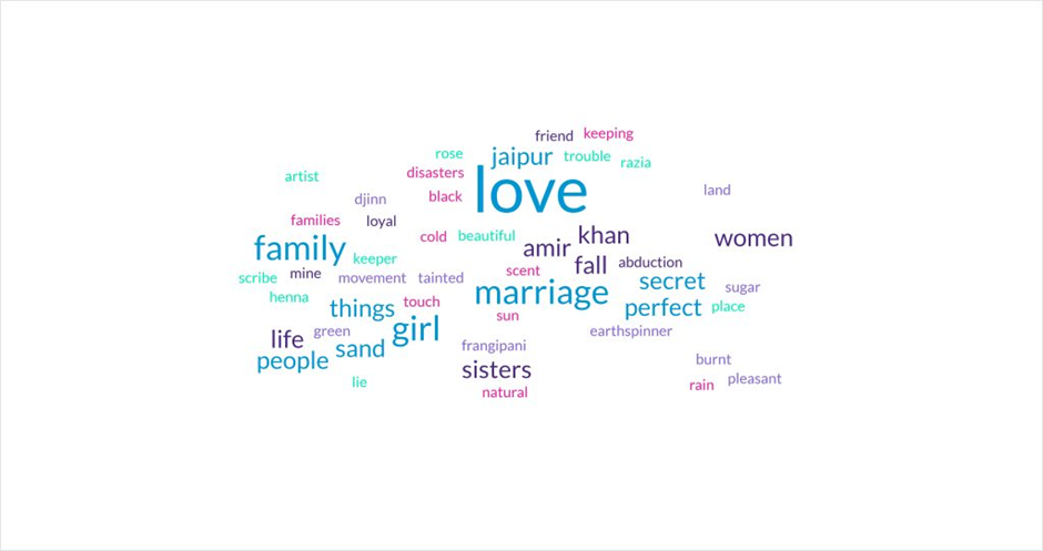 Book titles focus on love and marriage which suggest romance or romantic themes, and centre on femininity with words such as girl, women, sisters used often. Lies and secrets, family and families were also commonly used which hint at mystery and melodrama. Dramatic narratives and melodrama are typically associated with Bollywood storytelling.